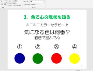 今までメンタル系の研修ではカラーセラピーのことを