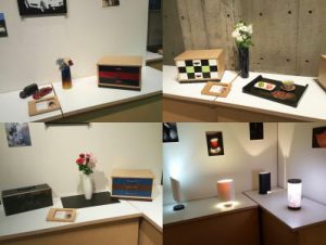 色彩デザイン科と造形デザイン科の2年生の作品が並んでいます。