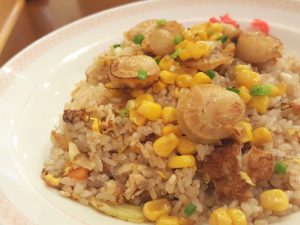 ローストビーフのサンドイッチもあり、興味津々でしたが、少し早い夕食はホタテが食べたくて、これまたキタカラにある食事処でホタテチャーハン!