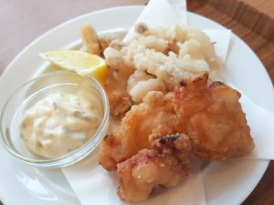 ということで、駅に併設されているキタカラという複合施設内に、4月にオープンしたばかりのフードコートでたこザンギ♪