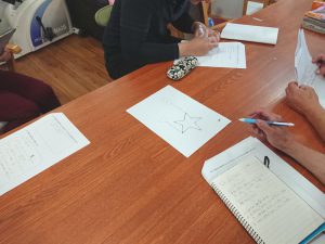 グループで課題をクリアするべく、皆さんで意見を出し合います。