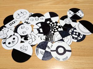 ベンハムトップは、白黒で描かれているにも関わらず、これをコマのように回転させると、色づいて見えます。