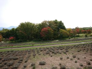 もうラベンダーもすっかりなくなり、奥にあるひまわり畑に数本のひまわりが咲いているくらいでした。